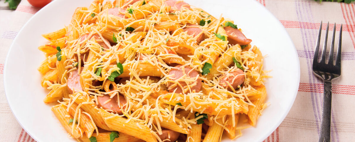– Pasta con Frankfurt y salsa de queso