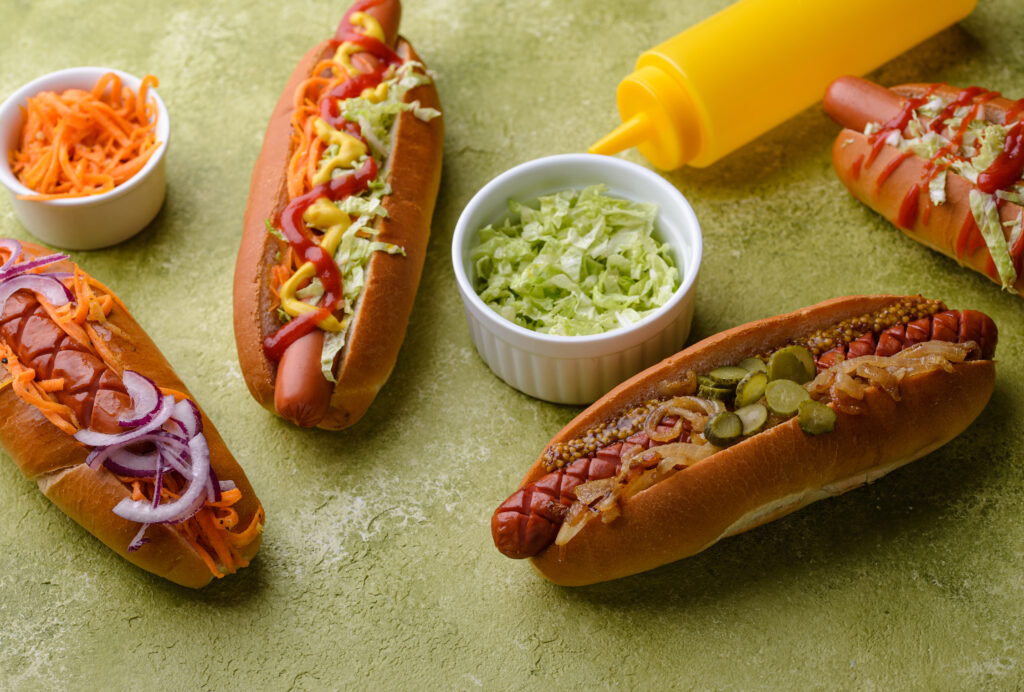 2. Hot dogs originales con toppings variados